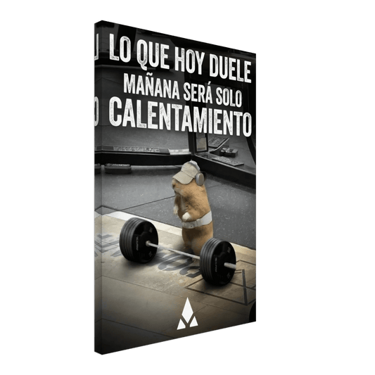 Lienzo de Motivación de Gimnasio: "Lo que Hoy Duele, Mañana Será Solo Calentamiento" en Monocromo Intenso